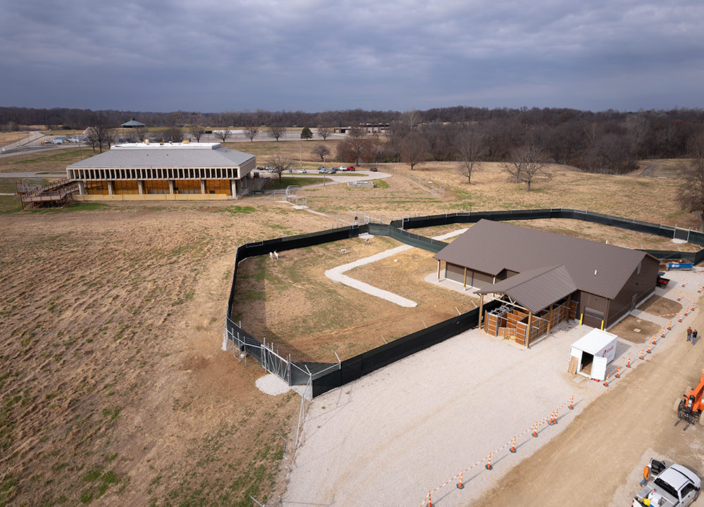 Over the last year and a half, construction at WildCare Park has consisted of demolition of a few older buildings, fence installation and grading around the perimeter of the property, restoration of 260 acres back to native grasses, construction of barns and a utility building, and renovation of the headquarters building with a new observation deck.